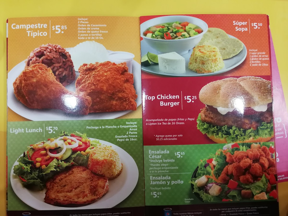 One of the standout features of the menu is the Top Chicken section, which includes the Top Chicken Individual and Top Chicken Burger, perfect for anyone craving chicken with a delicious twist. For those seeking something unique, the Jalapeños Poppers and Full Burrito from the Promoción Bebidas section will surely spice up your meal.